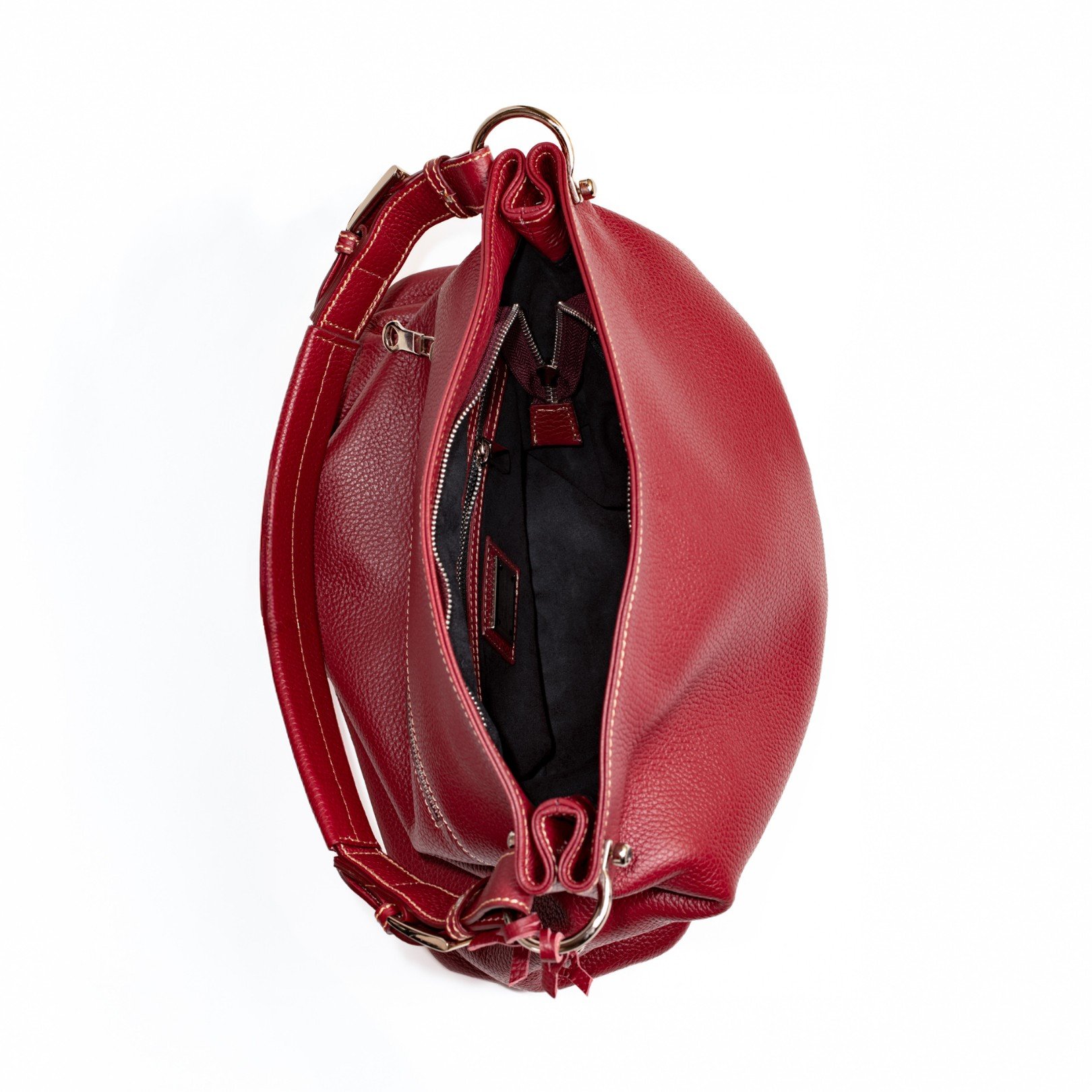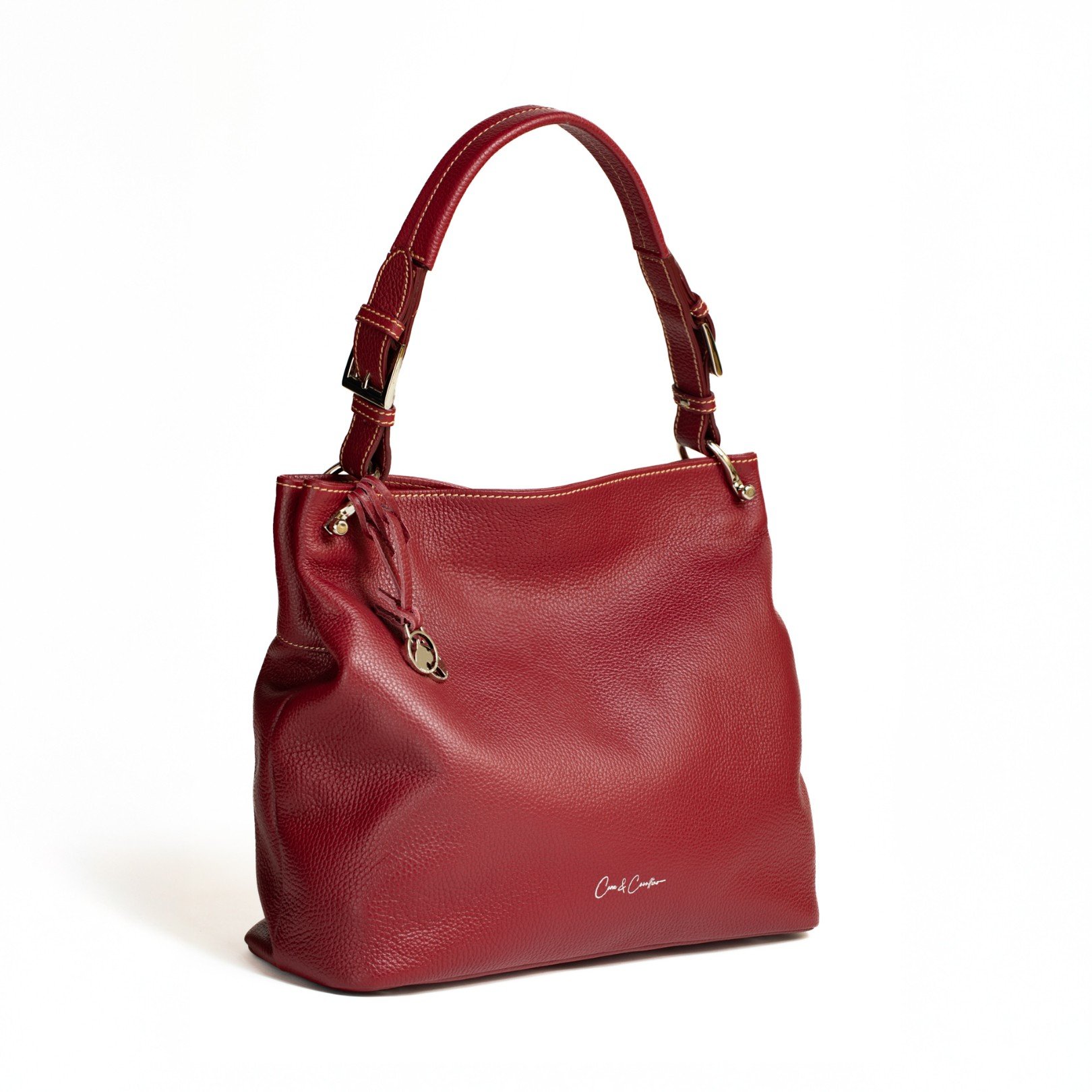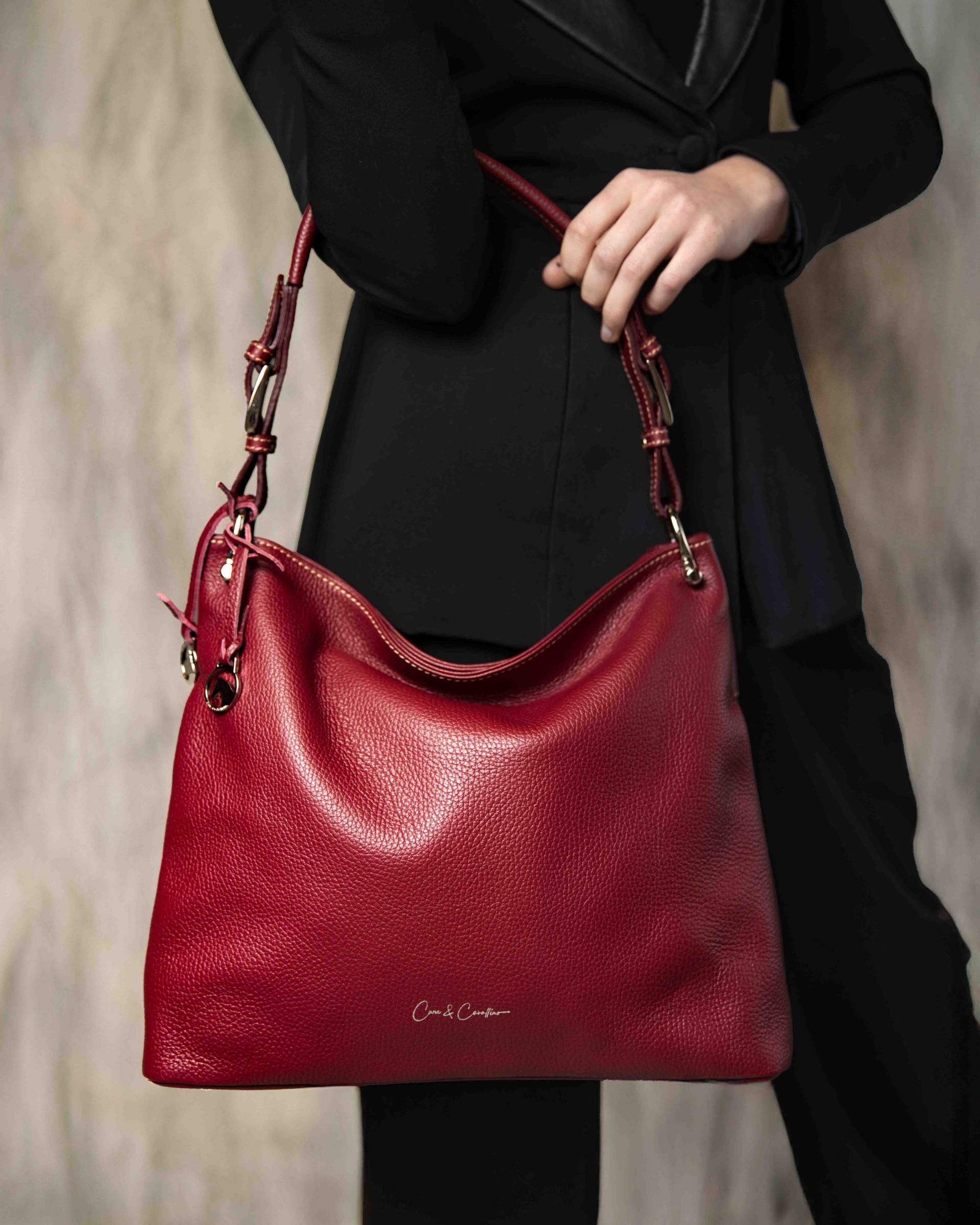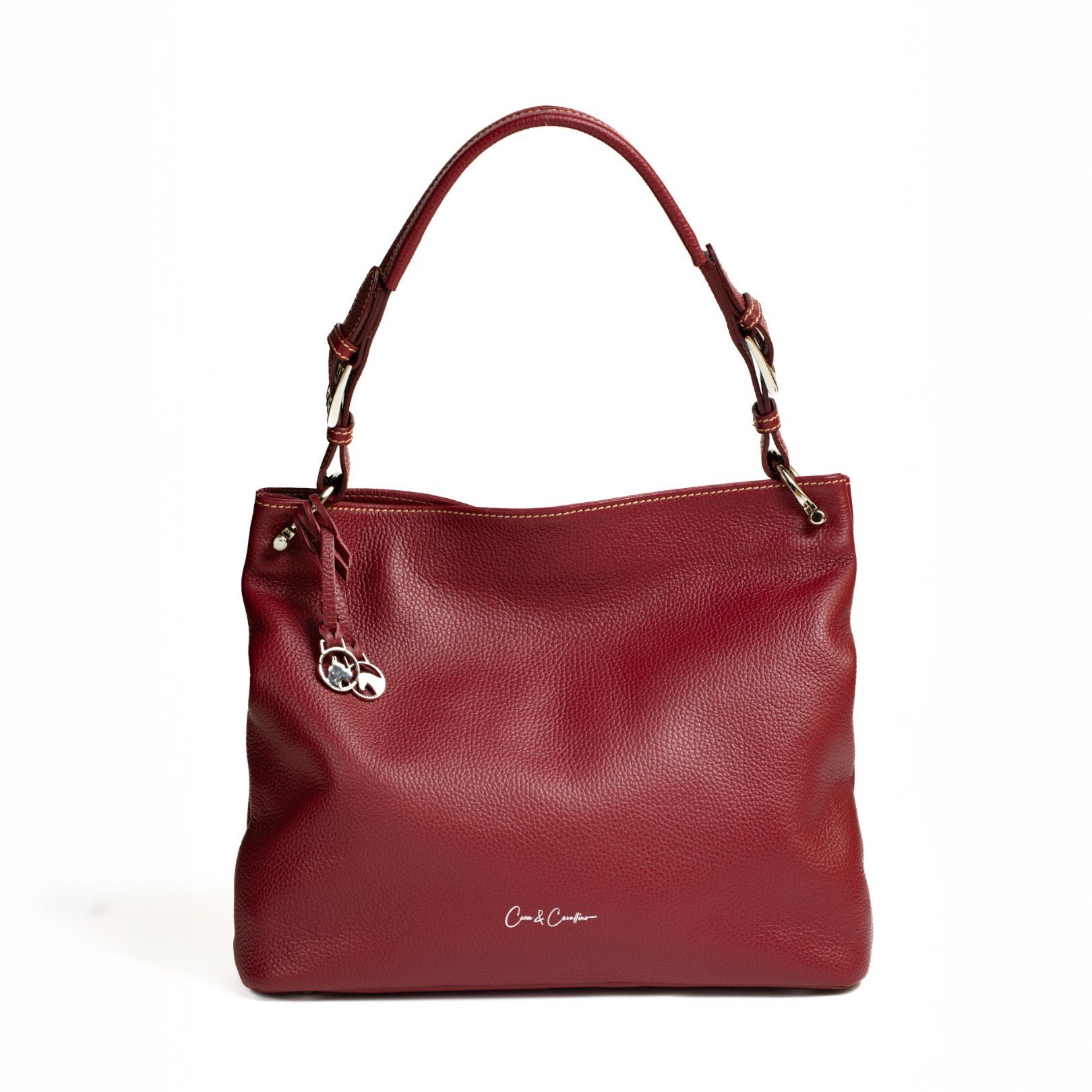 De Breton Schoudertas Bordeauxrood van Cane & Cavallino is een ruime en elegante hobo schoudertas, gemaakt van soepel Italiaans kalfsleer. Deze tas combineert stijl met praktisch gebruiksgemak en is daarmee perfect voor dagelijks gebruik, of het nu gaat om een dagje shoppen, een avondje bioscoop of een snelle boodschap.