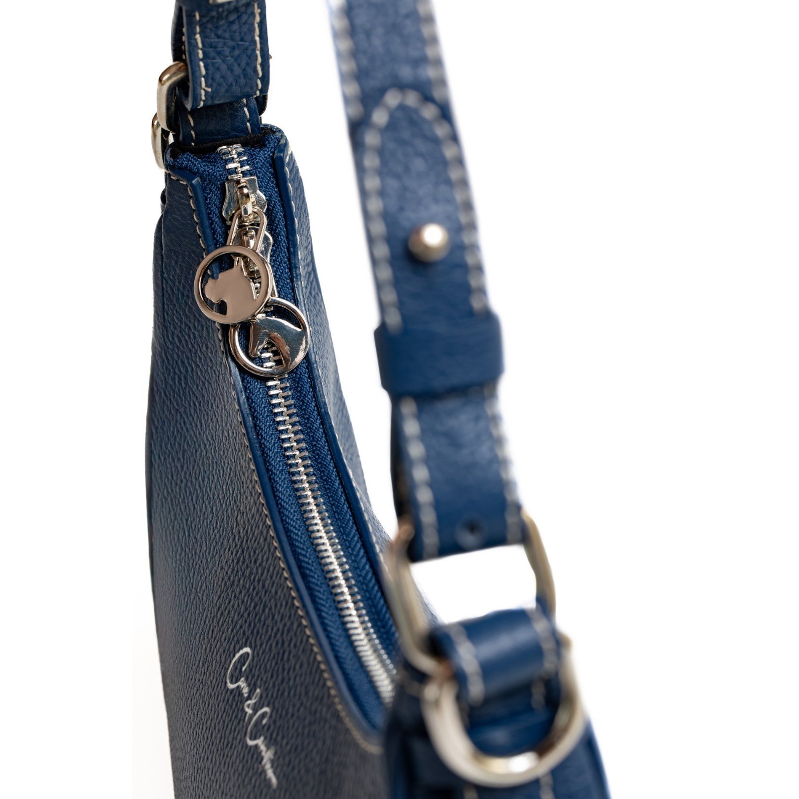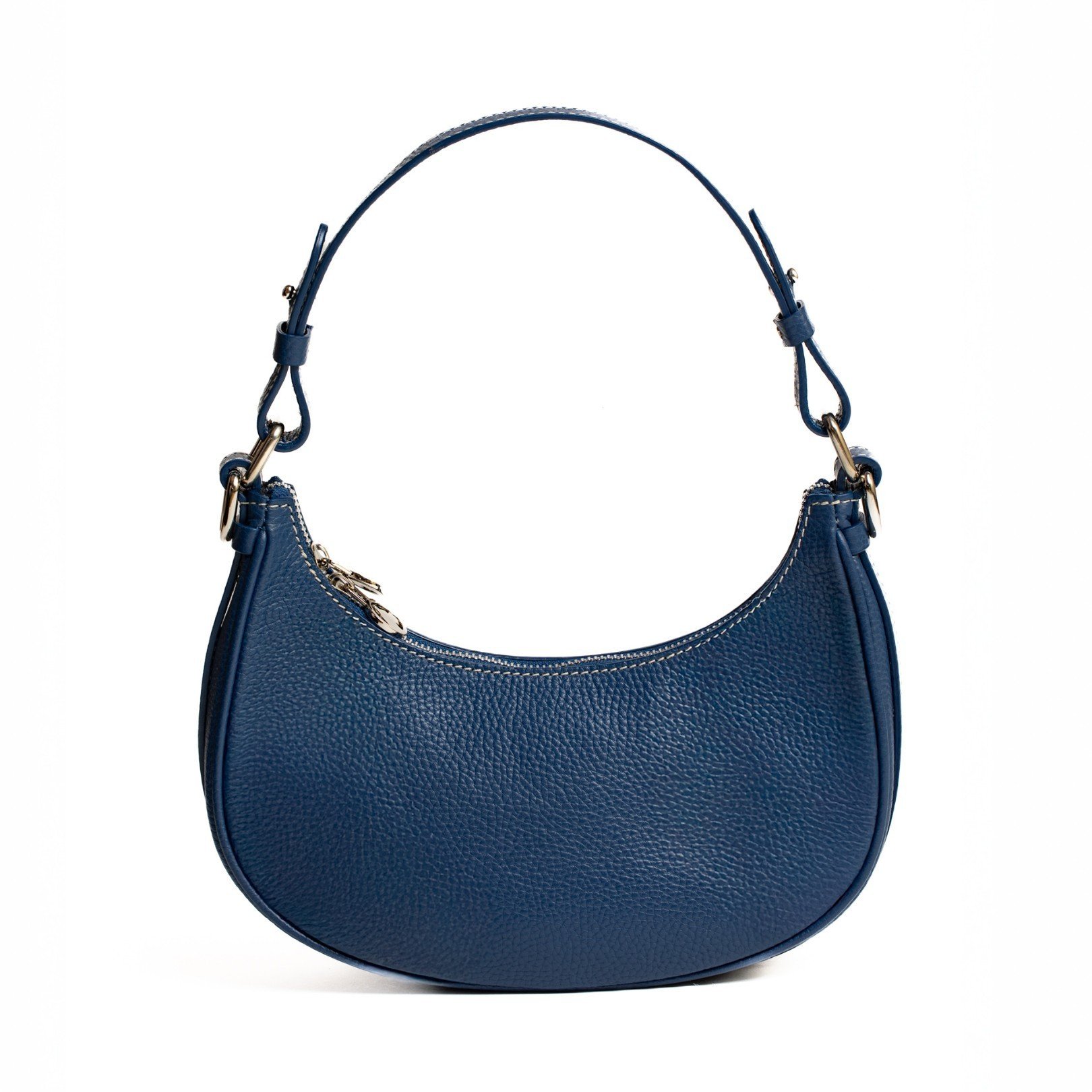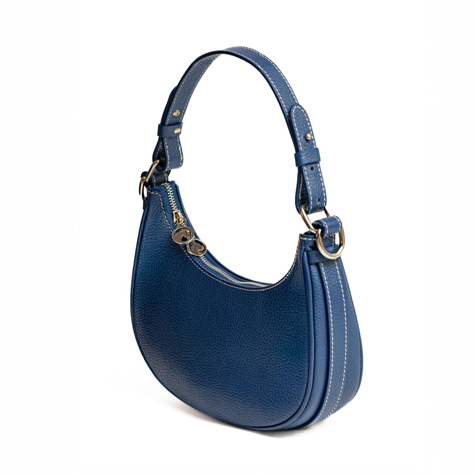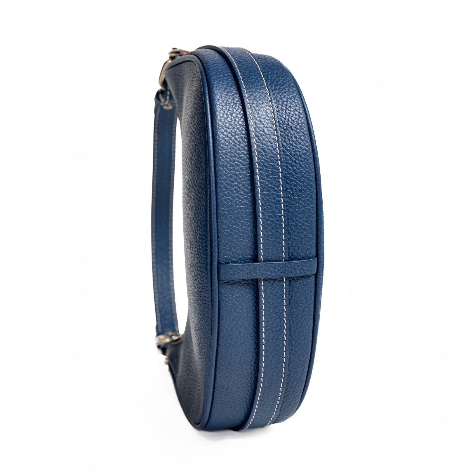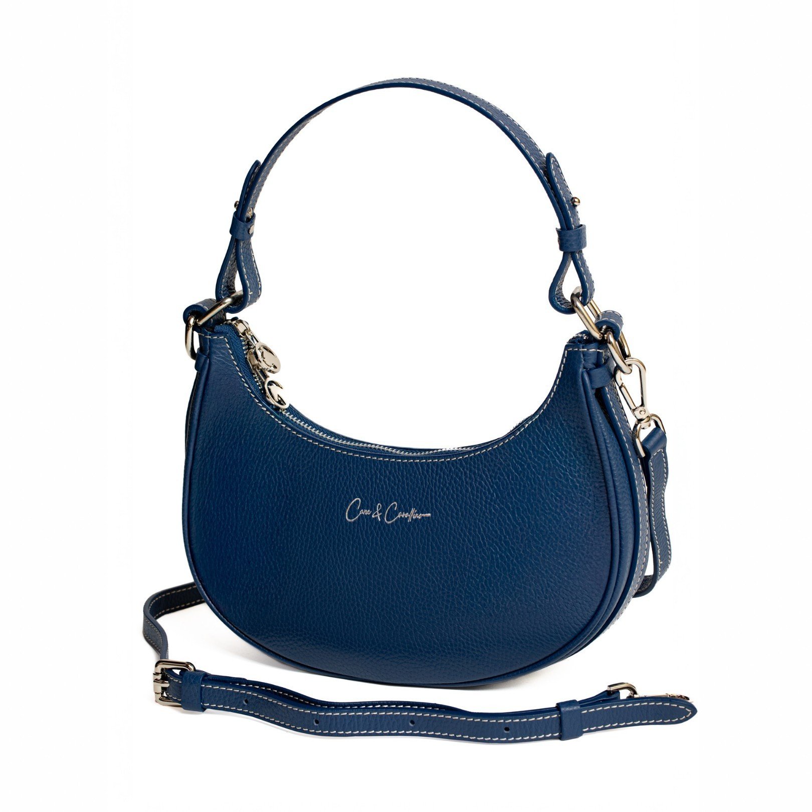 De mindernachtblauwe mini schoudertas heeft een halvemaan design, wat zorgt voor een speelse uitstraling. De Falabella is je partner in crime tijdens brunch of dinner, je dagje shoppen of avond in de club. Het blauwe, soepele, Italiaanse leer heeft een witte stiknaad en is voorzien van het logo van Cane&Cavallino in het zilver. De tas kan over de schouder of crossbody gedragen worden, door middel van de meegeleverde afneembare en verstelbare crossbodyriem. De zilveren rits is voorzien van zilveren Cane & Cavallino hangers, waarmee je de tas opent en sluit. De binnenkant van deze bag is afgewerkt met zwart suède en je vindt er een klein zijvakje. Ook is de binnenzijde afgewerkt met het zilveren embleem van Cane&Cavallino. Al onze tassen worden geleverd met een satijnen Cane&Cavallino stofzak.